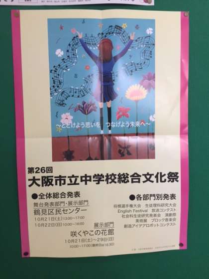10月21日(土)・22日(日)に大阪市立中学校総合文化祭が鶴見区民センター、咲くやこの花館で開催されます。