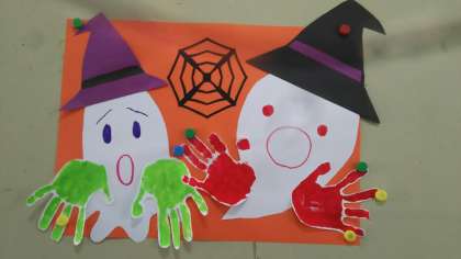 絵の具で手形をとったものを、お化けの手にしています。
