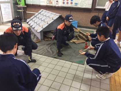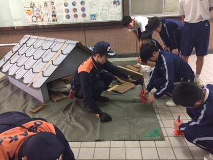 家屋等の下敷きになった人を救出するために使用するジャッキを実際に使い、訓練しました。このジャッキで2トンまで持ち上げることが出来るそうです。