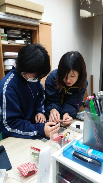 ボタンつけをしています。