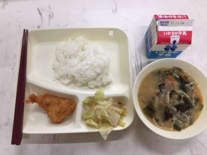 【えびフライ・豚汁・キャベツのかつお梅風味・ごはん・牛乳】