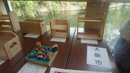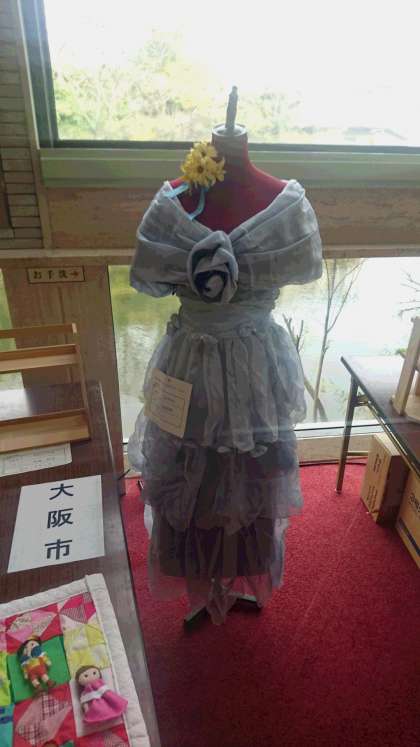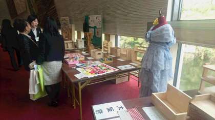 田辺中学校からは技術分野の作品と家庭科分野の作品、木工・幼児のおもちゃ・ドレスの計3点選出され、全体会場で披露されています。