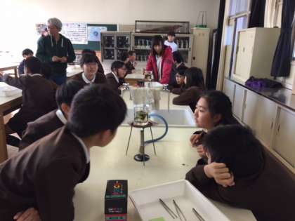 田辺小学校の1組は理科室で実験を行いました。 興味深そうに見つめている姿が印象的でした☆