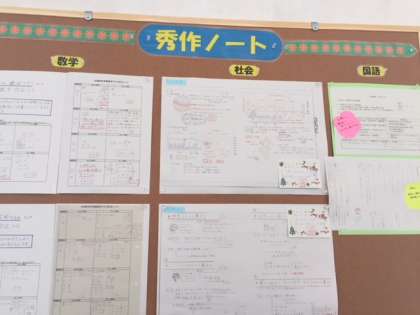 そこで、新しい取組みとして授業ノートの秀作を各学年に貼りだすことにしました。