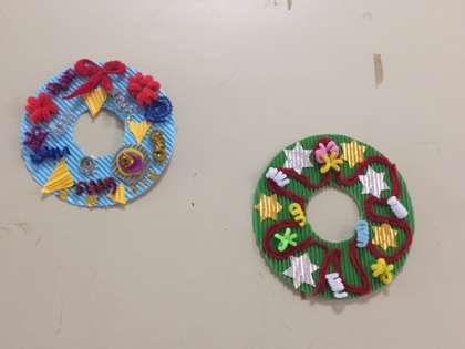 支援学級の教室の前にこんなに可愛い「クリスマスリース」が掛けてありました(^^♪