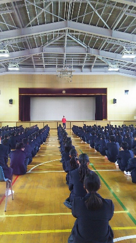 名札やボタンなどの服装チェックや明日のチャレンジテストに向けてのお話をしていただきました。
