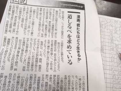 先週の元気アップ家庭学習の題は漫画「君たちはどう生きるか」についての社説を写すでした。