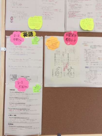 頑張りが伝わってくるノートがたくさん掲示されています。