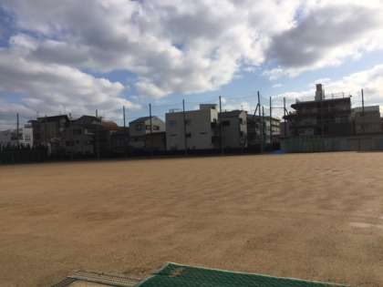 昨日は結構な雨が降りましたが、今朝のグランドは写真の状態です。