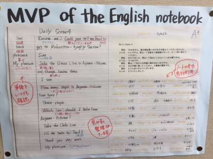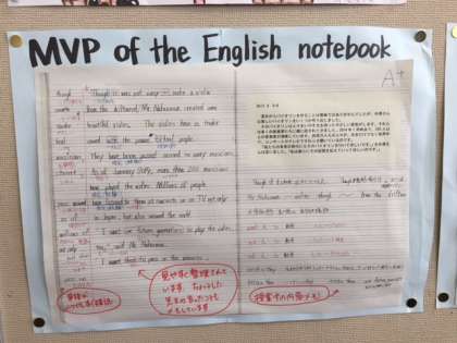 3年5組の教室には英語科の「MVP of the English notebook」が掲示してありました。