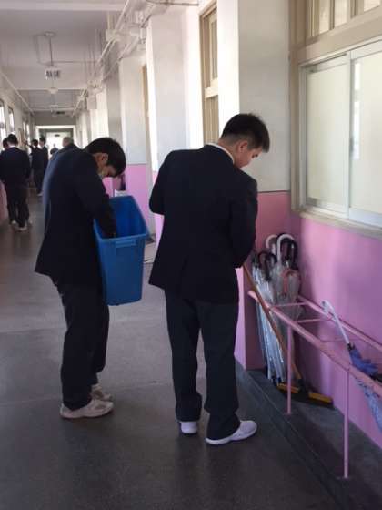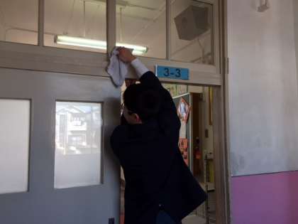 今日は公立高等学校一般選抜入試でしたが、3年生で既に進路先が決まっている生徒たちが教室整備を行いました。