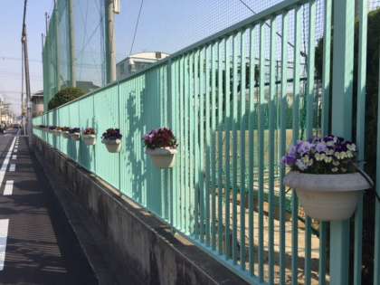 季節ごとにプランターの花が生徒や道行く人々の心を和ませてくれます。