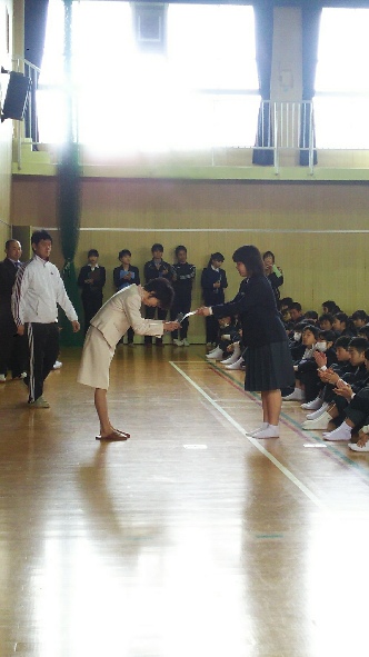 ブロック大会で第3位に輝いた2年生女子に賞状伝達を行いました☆