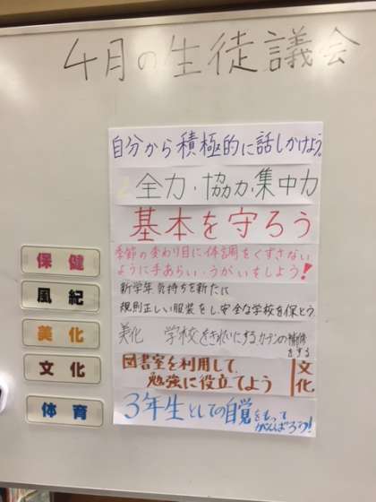 学年・学校の代表の皆さん、学校を良くするために、よろしくお願いします!