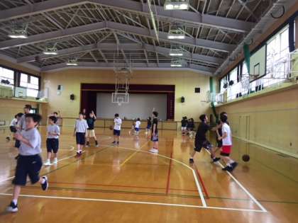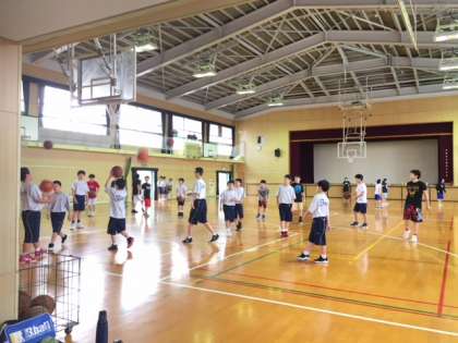 体育館ではバスケットボール部が1年生も上級生も一緒に活発に活動していました☆