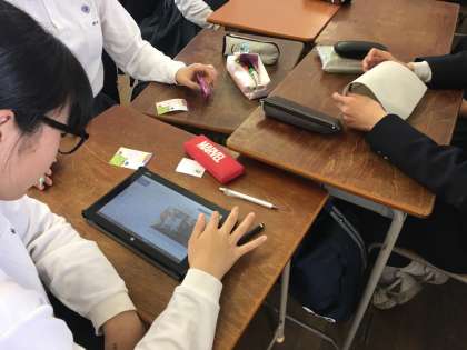 校外学習で見学する施設や交通手段などタブレットを使い調べました。