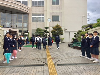 全校生徒の皆さん、「めざせ あいさつ名人!」