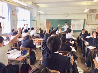 生徒たちの手もしっかりと挙がり、意欲を感じる授業でした。