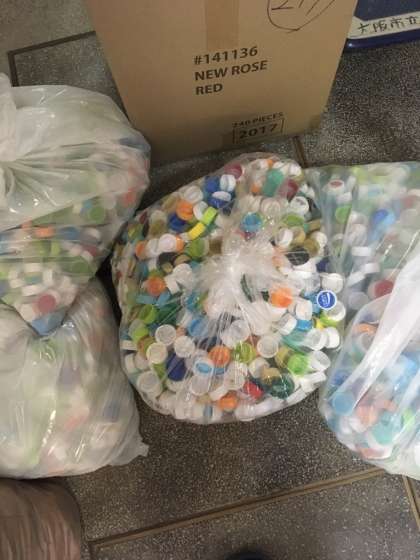 生徒会活動の一環でプルタブやペットボトルのふたの回収を行っています。