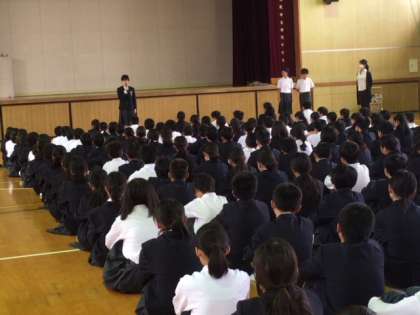 本日の1年学年集会では先日行われた生徒専門委員会で