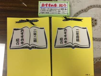 国語の授業の一環で、連休前に全員が図書室の本を借り、紹介文を作成しました。