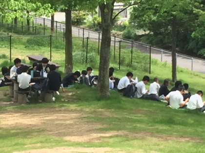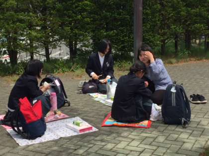 お日様が顔を出し、とても気持ち良くお弁当を食べてます^_^