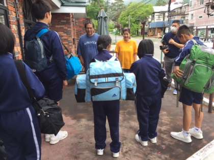ペンションのオーナーさんご夫婦にお世話になったお礼を言って集合場所に向かいました。