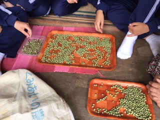 お土産として大阪に持って帰る豆の選別作業です。 椎茸や山菜も収穫してきました。