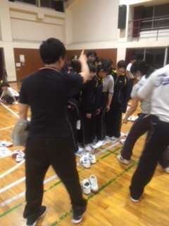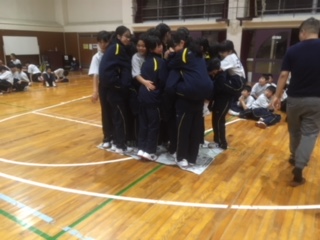 最後は、新聞紙の上に何人乗れるか選手権です。みんなで協力してどのクラスも頑張りました。