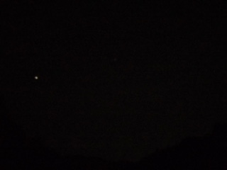 教頭先生の説明で皆、星の輝く夜空を見上げました。実物はとっても綺麗な夜空ですが、写真では、なかなか上手く撮れません。画面左の人小さな点! これは星です。