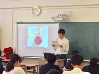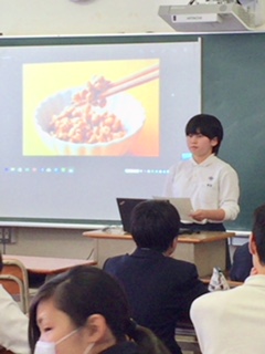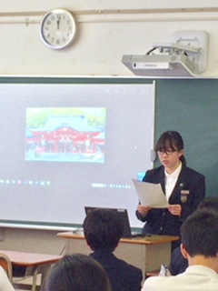 ちょっと緊張気味でしたが、神社や納豆、けん玉やお茶など一生懸命に英語で紹介していました。