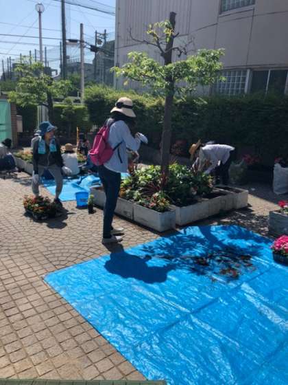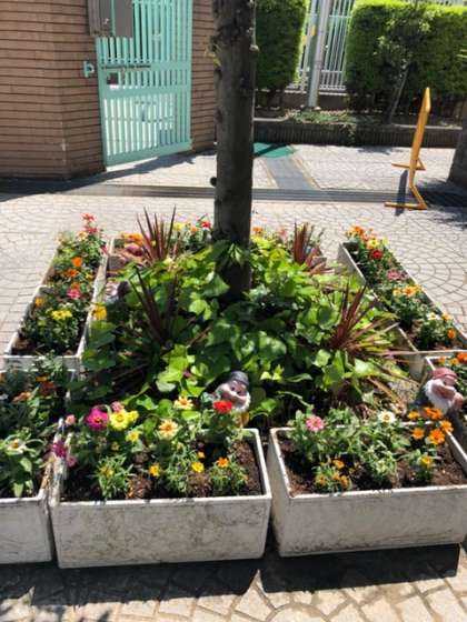 PTA環境委員会の皆さんが玄関前の花を夏の花に植え替えをしてくださいました。