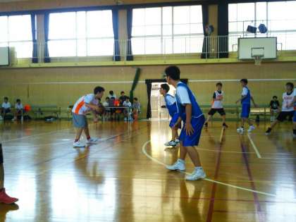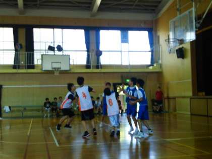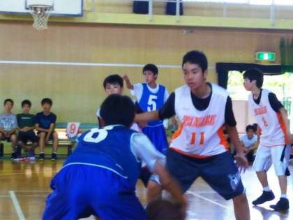 田辺中学校の体育館で玉津中学校と練習試合を行いました。