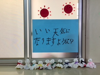 支援学級の仲間たちがてるてる坊主をたくさん作ってくれています!