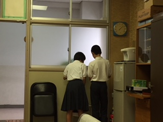 1年生の保健委員さんが、校長室の液体石鹸の点検に来てくれました。