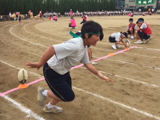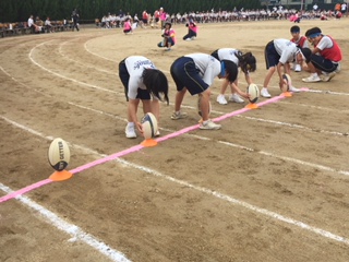 この種目、最後のラグビーボールを立てるのが、なかなか難しいんです^_^