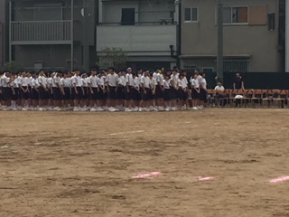 お天気を心配しましたが、無事にプログラムを終えることが出来ました! 最後の整列も田辺中学校らしくビシッと頑張ってました。