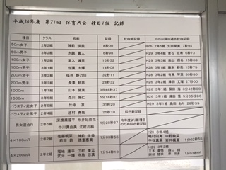 先日開催した第71回 体育大会の記録を玄関ホールに掲示しています。
