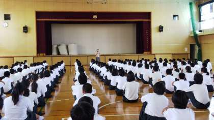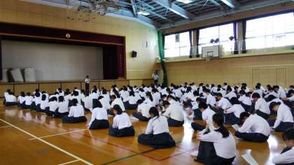 進路指導主事の粕野先生から、夏休みの学習方法についての話をしていただきました。