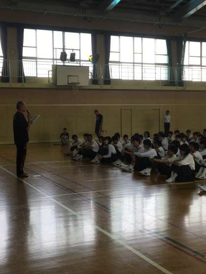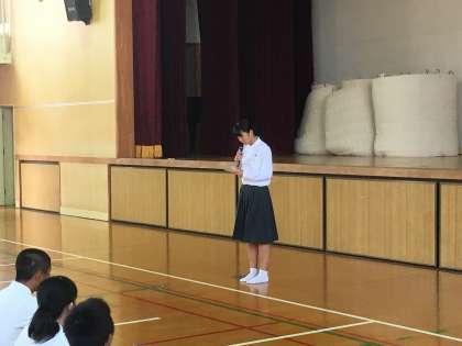 1学期末を迎え、2年生の学年集会では各クラスの総務委員が1学期の反省を行いました。生徒自らが自分のクラスや学年の1学期を振返ったことはとても意義があると思います。