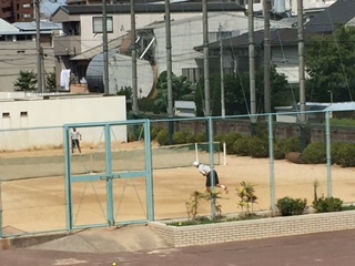 暑さにも負けず、今日も頑張っている男子テニス部です!