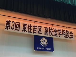 東住吉区役所、3階大ホールで東住吉区PTA協議会主催の第3回 東住吉区 高校進学相談会が開催されています。