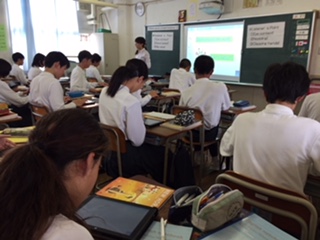2年生英語科では将来の夢を英語でプレゼンテーションしました。タブレットを使用して発表ノートを作成し、プレゼンテーションの準備を行いました。