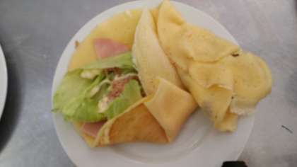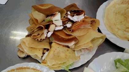 今回は甘いクレープと、チーズや野菜が入ったおかずクレープを作っています。