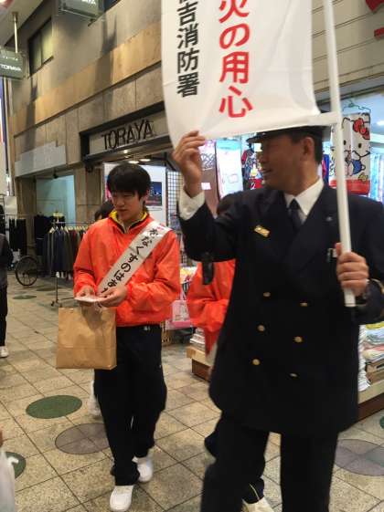 今日は火災予防を啓発するために、駒川商店街で街頭活動を行いました。