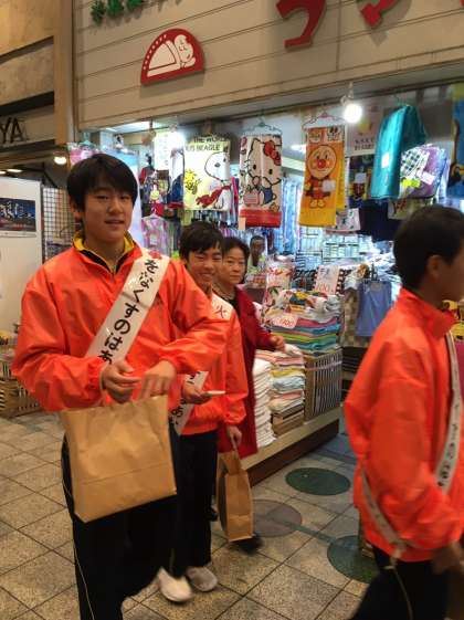 お揃いのジャンパーを着せていただき、ティッシュを配布したり、呼びかけたり・・・。
