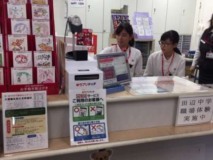 南田辺五郵便局・山坂郵便局に「勤務」している生徒たちは2日目は、東住吉郵便局に連れて行っていただきました。