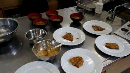 2年生は今週、前回の肉料理に続き、魚料理で調理実習を行っています。