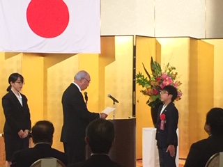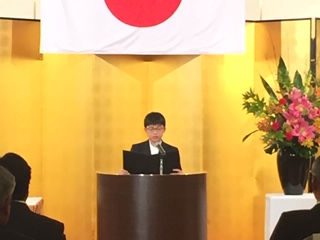 平成30年度、税の作文で、納税貯蓄組合大阪府総連合会長賞した森岡さんが表彰式に出席しました。受賞作文をしっかりと朗読し、多くの出席者の皆さまに感銘していただきました。