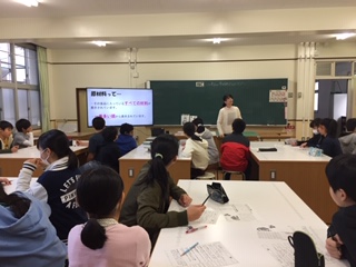 南田辺小学校の1組は被服室で家庭科の授業を受けました。